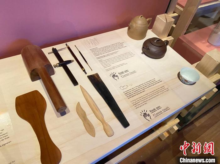 荷蘭世界博物館內(nèi)展出的紫砂壺和制作工具。(受訪者供圖)