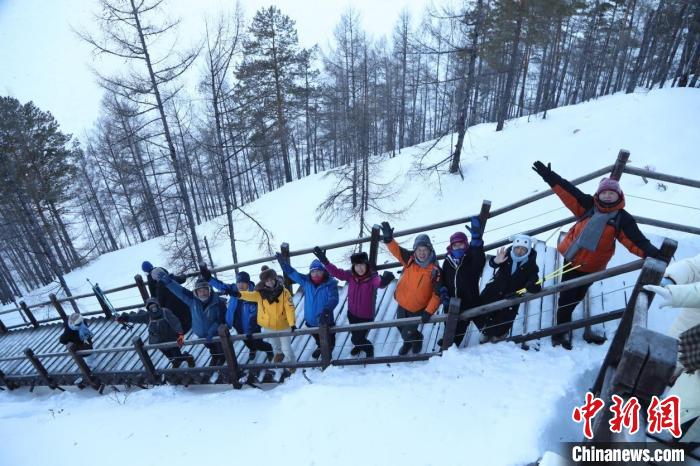 第三天的路線是圖強(qiáng)林業(yè)局龍江第一灣,全程6公里。自烏蘇里淺灘出發(fā),徒步愛好者們欣賞大興安嶺的茫茫雪海。一路上,原始森林披雪而立,壯闊雪景令人嘆為觀止。艱難跋涉后,登上龍江第一灣觀景平臺(tái),俯瞰那宛如巨龍蜿蜒的壯美黑龍江,大自然的雄渾氣魄撲面而來(lái)。來(lái)自廣西的“小砂糖橘”們,今年也與來(lái)自全國(guó)各地的徒步愛好者齊聚龍江第一灣,開啟尋北之旅。