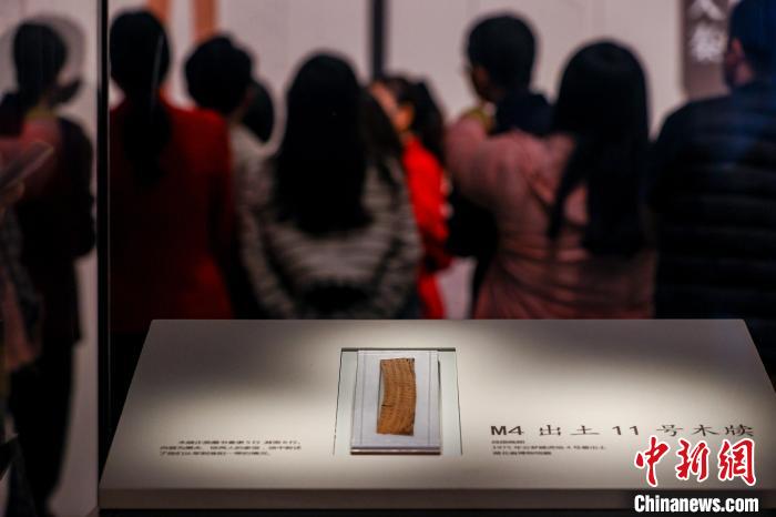 云夢睡虎地4號墓出土的木牘在湖北省博物館展出。中新社記者 張暢 攝
