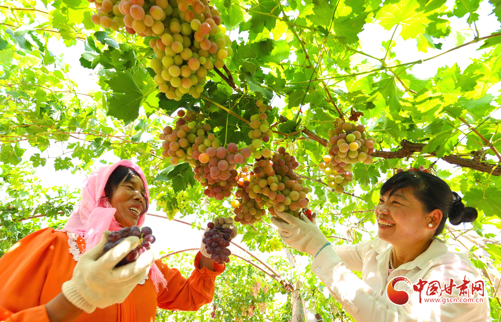 8月12日,甘肅省張掖市臨澤縣板橋鎮(zhèn)1.5萬(wàn)畝葡萄喜獲豐收,進(jìn)入采摘期,吸引著周邊省市客商和游客前來(lái)觀賞、采摘與訂購(gòu)。