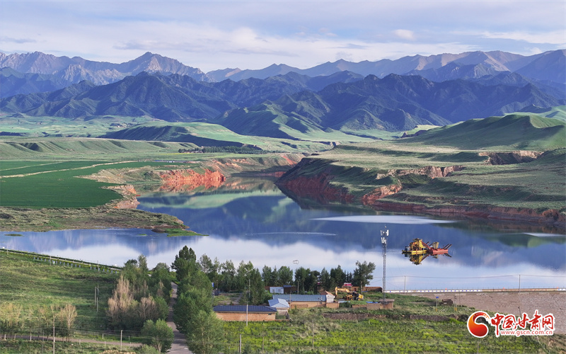 眼下,民樂縣雙樹寺水庫碧波蕩漾,與藍(lán)天白云、群山交相輝映,形成一幅水清景美的生態(tài)畫卷。