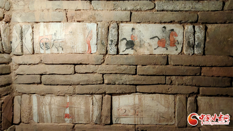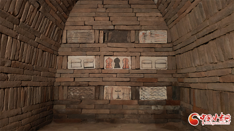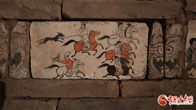 高臺縣魏晉壁畫墓,位于駱駝城東南5公里處的戈壁臺地,該墓曾兩次被盜,90年代后期由甘肅省文物考古研究所與高臺縣博物館實施搶救性清理。其中,100多塊彩繪畫像磚成為學界焦點。