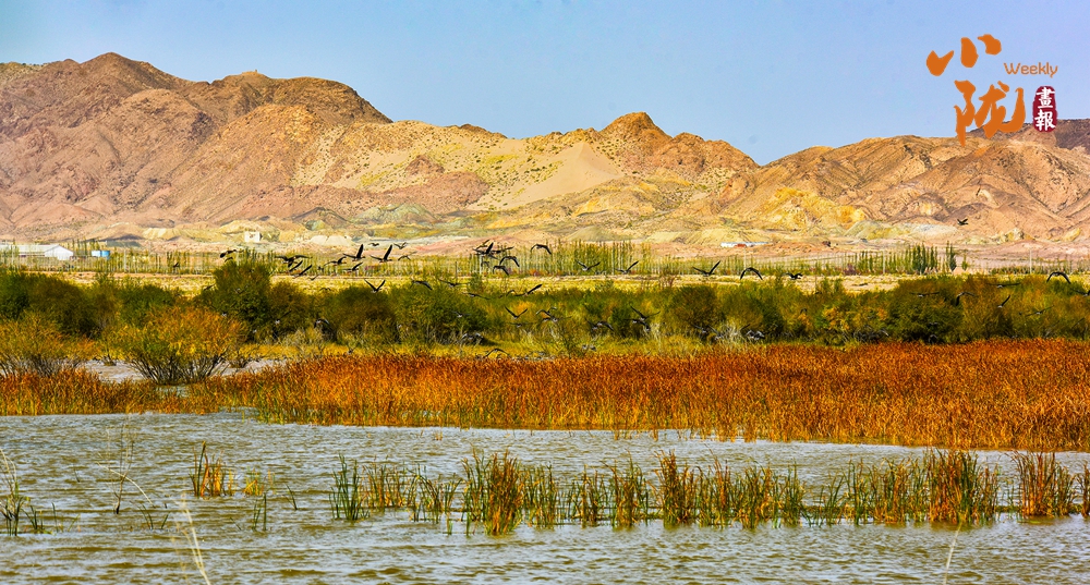 水草搖曳、波光粼粼、候鳥翻飛,湖泊與沙丘共存,藍天與碧水相接,集大漠戈壁、蘆葦、候鳥、湖泊于一體,構(gòu)成了一道獨特的自然景觀。