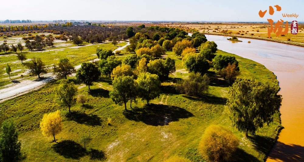 河堤兩岸各種樹木及灌木疊翠流金,綿延數(shù)里;碧波蕩漾,林鳥相依,呈現(xiàn)出獨具特色的沙漠濕地風貌。