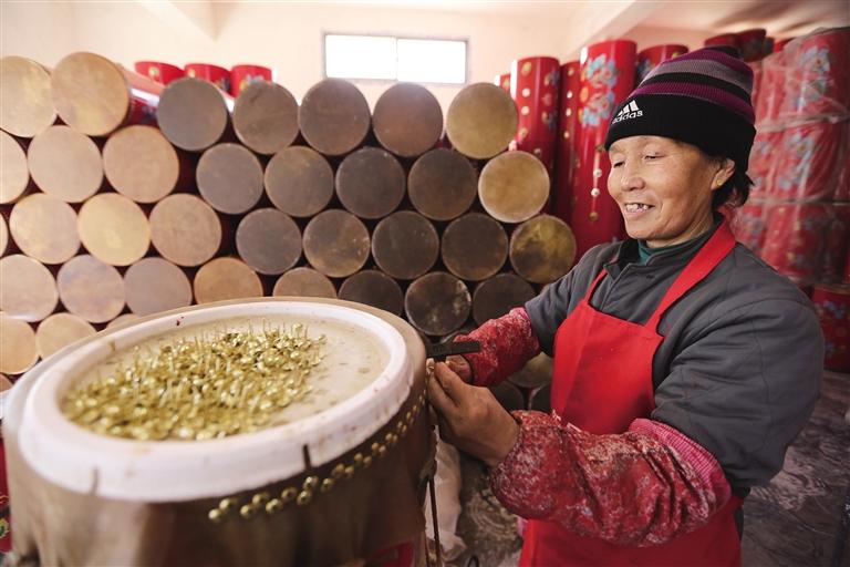 一鼓作氣——定西手工藝人制作牛皮鼓