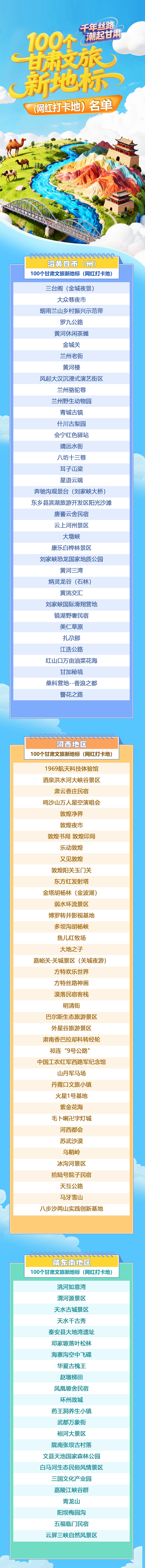 附:100個(gè)甘肅文旅新地標(biāo)(網(wǎng)紅打卡地)名單‌