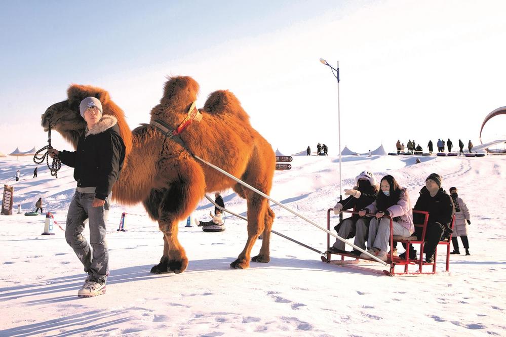 連日來(lái),眾多游客在張掖國(guó)家沙漠體育公園冰雪嘉年華體驗(yàn)冰雪樂(lè)趣,冰雪滑道、碰碰球、雪地摩托車(chē)、駱駝雪車(chē)等多樣的冰雪活動(dòng)為市民游客獻(xiàn)上冬日文旅盛宴。 李自海 攝