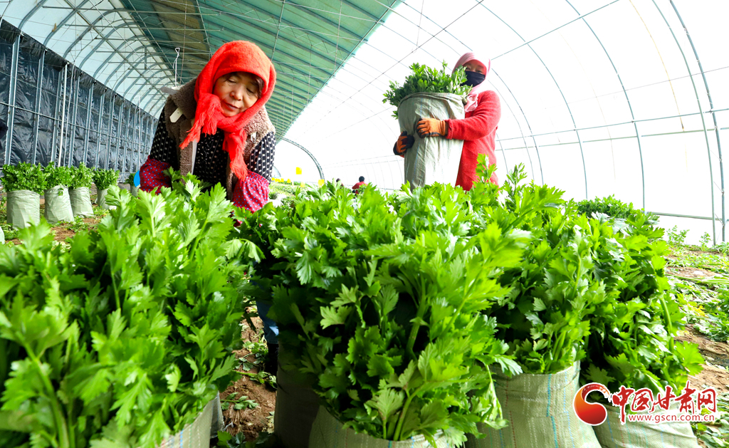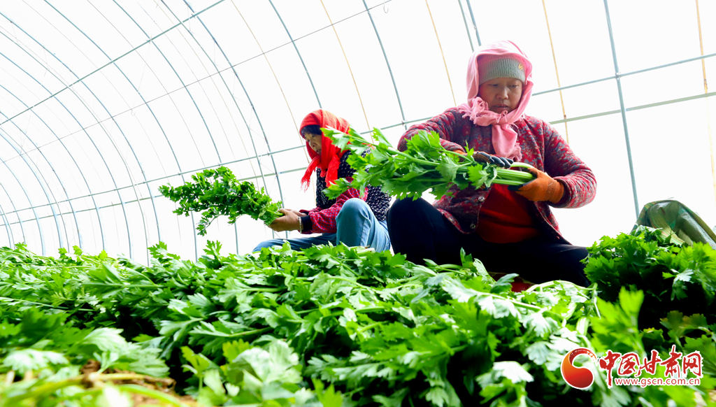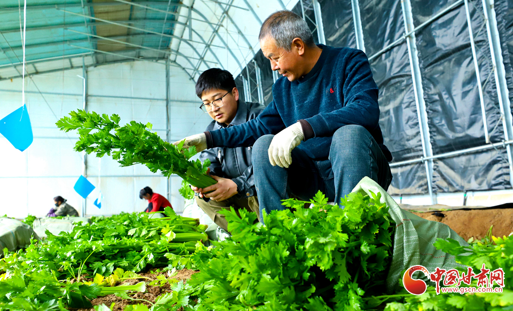 1月29日,臨澤縣鴨暖鎮(zhèn)古寨村的農(nóng)業(yè)大棚內(nèi),芹菜正值采收季。種植戶們忙著收割、打捆、裝箱,準(zhǔn)備將這批新鮮蔬菜發(fā)往新疆、內(nèi)蒙古等地,保障冬季市場(chǎng)供應(yīng)。