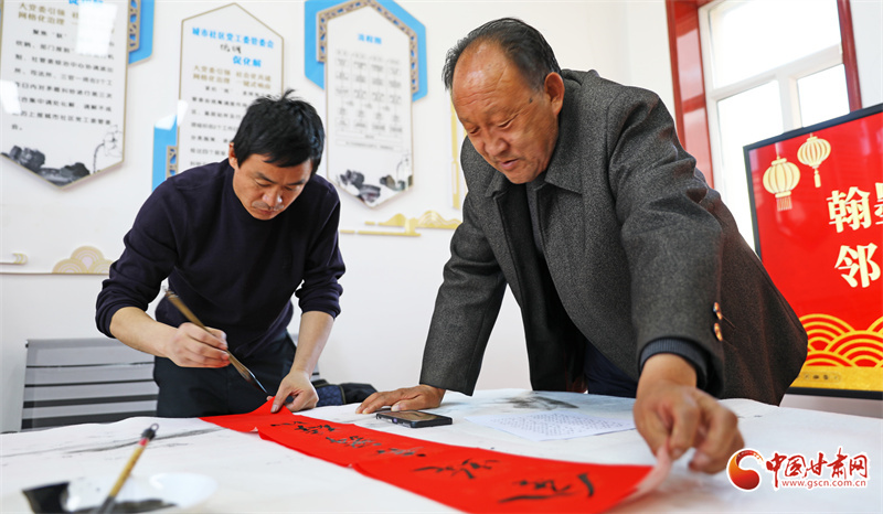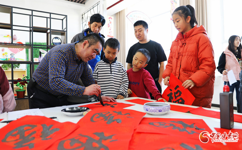 春節(jié)臨近,民樂縣組織群眾文化志愿者服務隊開展“翰墨迎春”公益文化活動,志愿者現(xiàn)場揮毫潑墨書寫春聯(lián),為群眾書寫春聯(lián)和“福”字,讓群眾在家門口享受“文化大餐”,迎接新春佳節(jié)的到來。