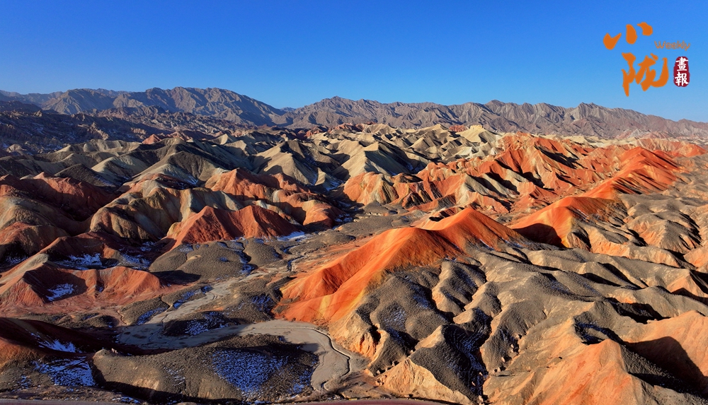 一場春雪后,臨澤七彩丹霞褪去了往日的張揚(yáng),化身為一幅“半是火焰、半是海”的水墨丹青長卷。